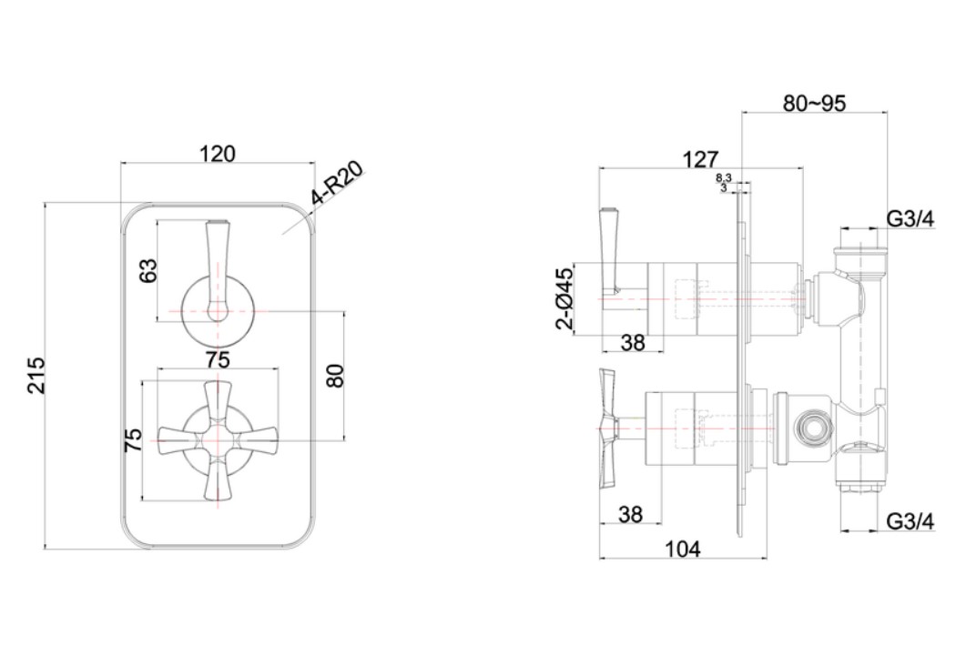 głębokość montażu: 80 ~ 95 mm