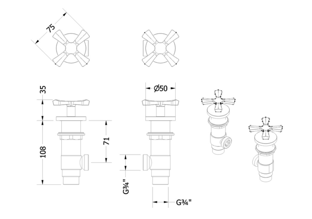 Burlington Riviera Bateria podtynkowa 2-otworowa Złota RIV34GOLD