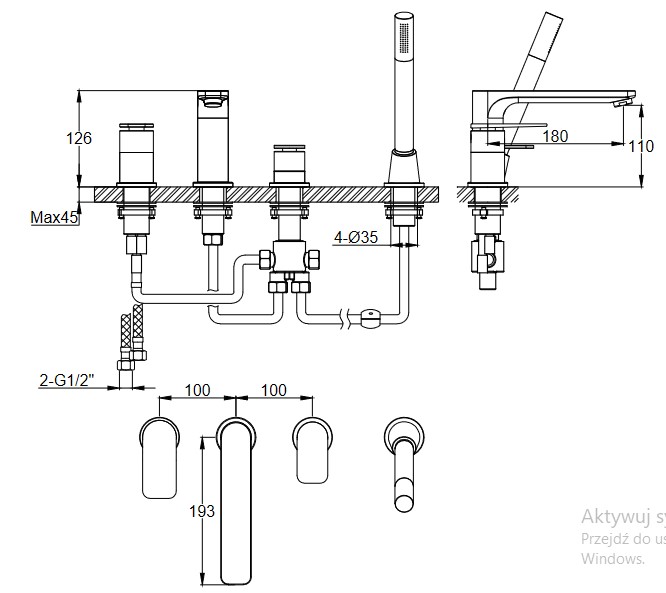 KOHLMAN Wexpo Bateria wannowa 4-otworowa chrom QB244W