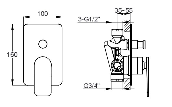 KOHLMAN Wexpo Bateria wannowo-prysznicowa podtynkowa z dwoma wyjściami chrom QW210W