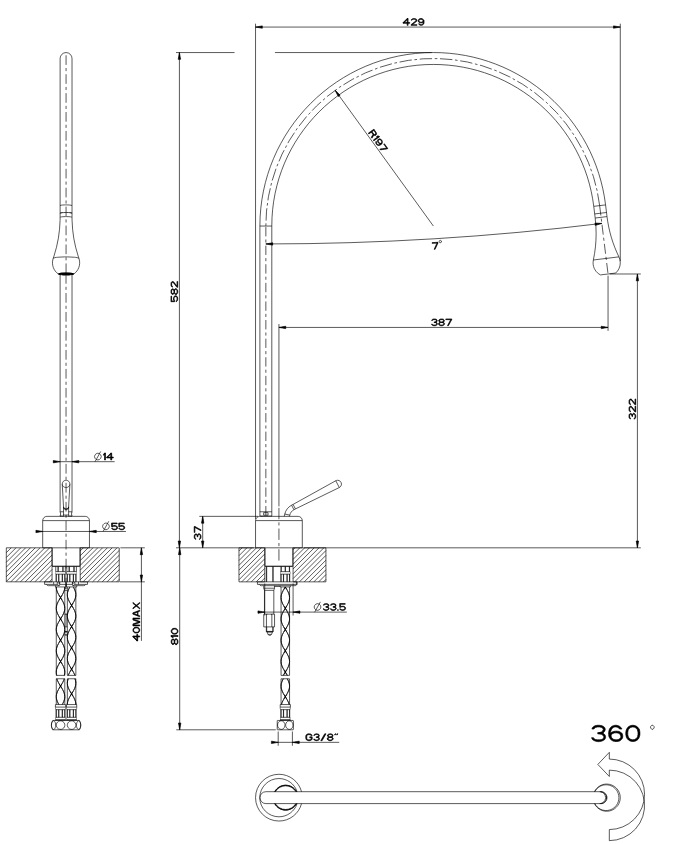 Wysięg wylewki:387 mm