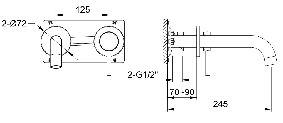 Głębokość montażu: 70 - 90 mm