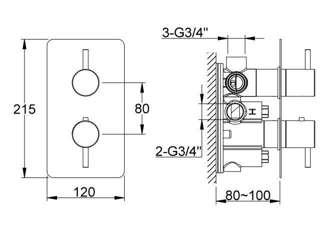 KOHLMAN Axel Bateria wannowo-prysznicowa termostatyczna podtynkowa z trzema wyjściami złoty połysk QW433AGD