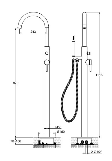 KOHLMAN Axel Bateria wannowa wolnostojąca z obrotową wylewką złoty QF1165AGD