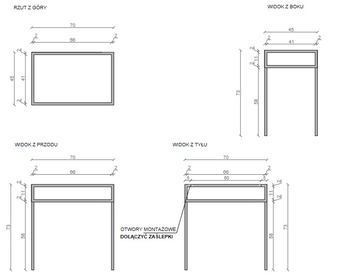 Cristalstone Stelaż pod umywalkę stojący 70 x 45 x 73 cm czarny mat ST700-05