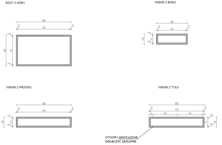 • Kształt: Prostokątny