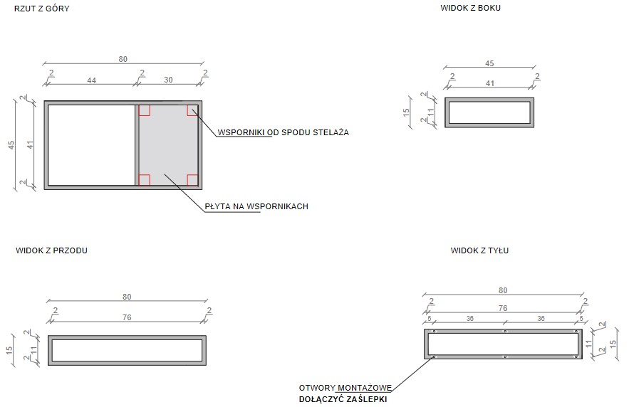 Cristalstone Stelaż pod umywalkę wiszący 80 x 45 x 15 cm czarny mat ST800-02