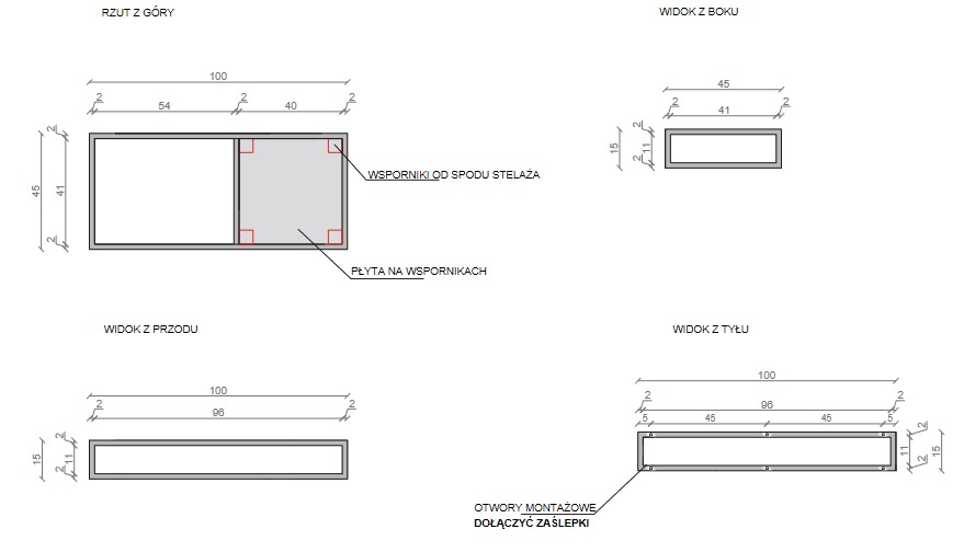 Konsola do umywalek o rozmiarach 100 × 45 cm wyposażona jest w półkę, na której zmieszczą się najpotrzebniejsze przybory toaletowe. Możesz wykorzystać to dodatkowe miejsce na kosmetyki, środki czystości czy zapasowe ręczniki.