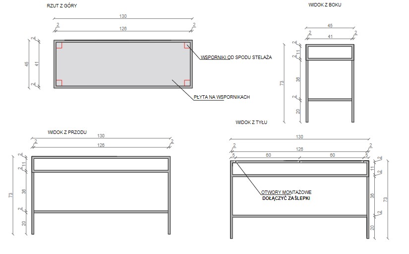 Stelaże pod umywalki genialnie sprawdzają się w pomieszczeniach o loftowym charakterze. Konsola pod umywalkę wyposażona jest w dodatkową półkę, na której z pewnością zmieścisz wszystkie niezbędne w łazience i salonie kąpielowym dodatki, takie jak ręczniki, kosmetyki lub środki czystości.