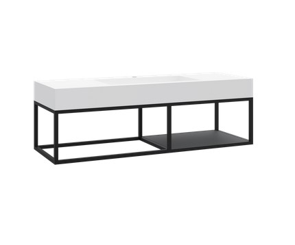 Cristalstone Stelaż pod umywalkę wiszący z małą półką 130 x 45 x 30 cm czarny mat ST1300-07
