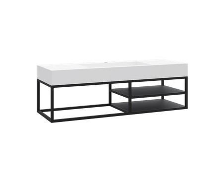 Cristalstone Stelaż pod umywalkę wiszący z dwoma półkami 130 x 45 x 30 cm czarny mat ST1300-08