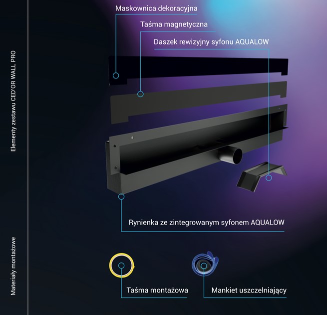Cedor WALL PRO Odpływ ścienny 30-90 cm ( do wyboru ) super niski stal szczotkowana F361-51697_20210426175537