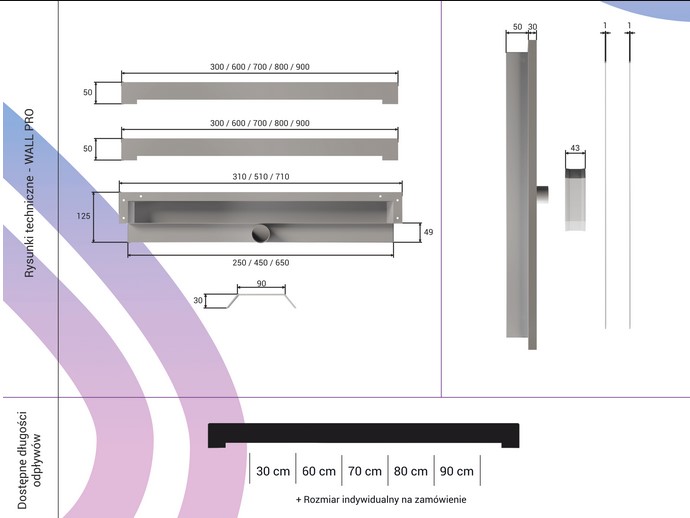 Cedor WALL PRO Odpływ ścienny 30-90 cm ( do wyboru ) super niski różowe złoto błyszczące F361-51697_20210426181332