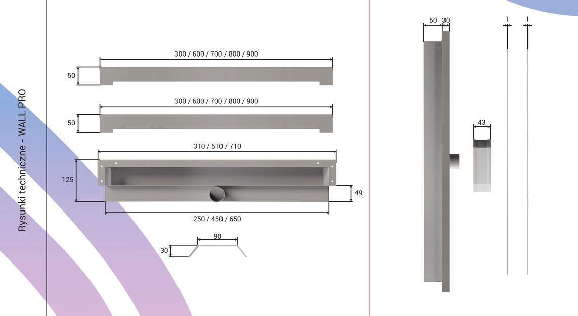 Cedor WALL PRO Odpływ ścienny 30-90 cm ( do wyboru ) super niski stalowy błyszczący F361-51697_20210422114851