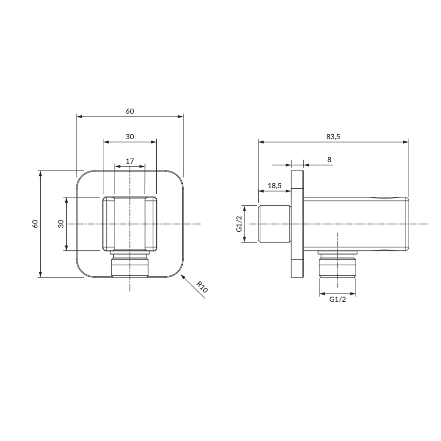 rozmiar rozety: 6x6 cm, odległość od ściany: 6,6 cm