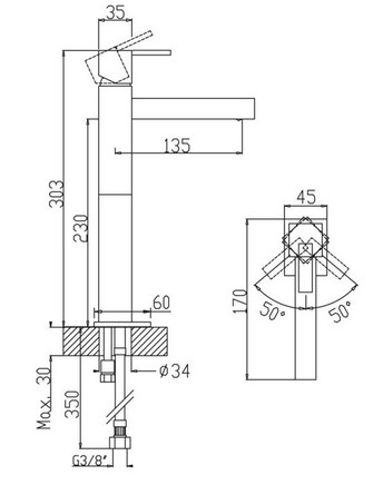 Zasięg wylewki: 135 mm
