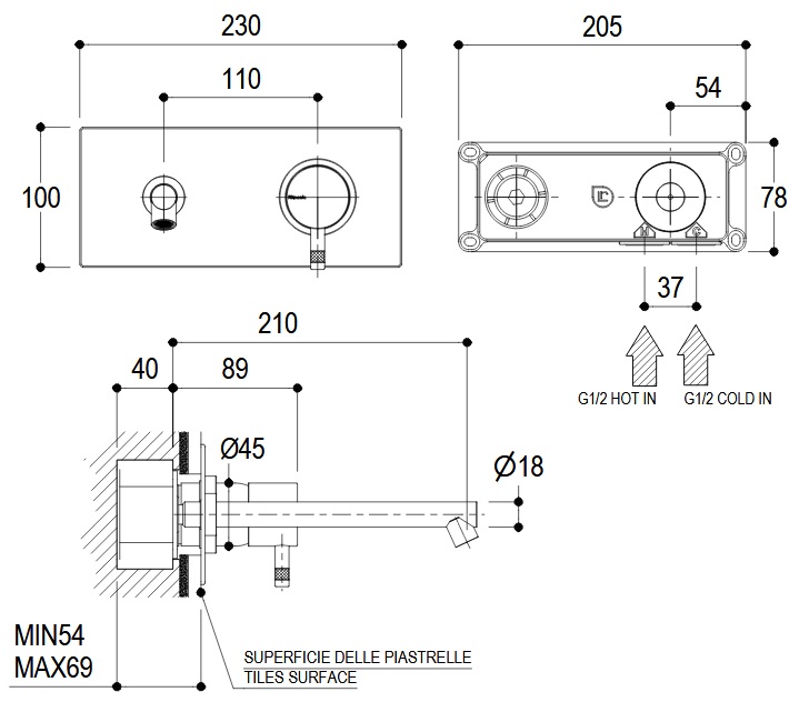 Ritmonio Diametro35 Bateria umywalkowa ścienna podtynkowa chrom E0BA0117