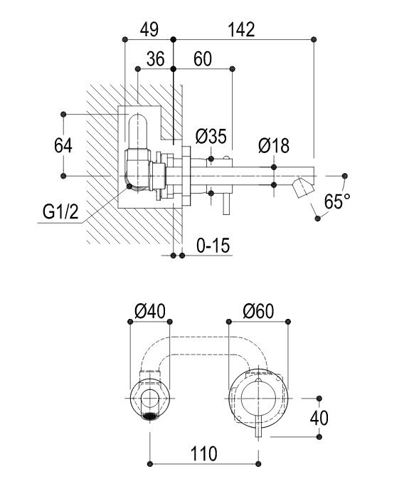 Ritmonio Diametro35 Bateria umywalkowa ścienna podtynkowa chrom E0BA0440SPSXCRL