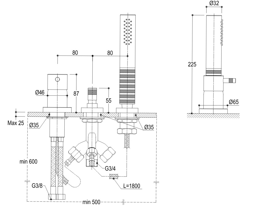 Ritmonio Diametro35 Bateria wannowa na brzeg wanny 3-otworowa chrom E0BA0431S/PCRL
