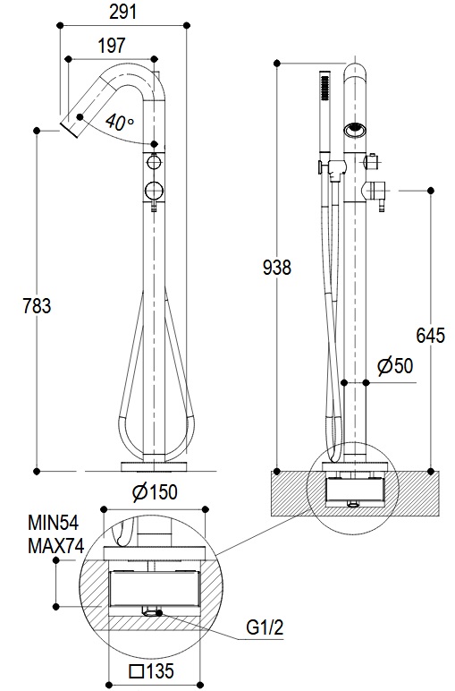 Wysokość wylewki: 783 mm