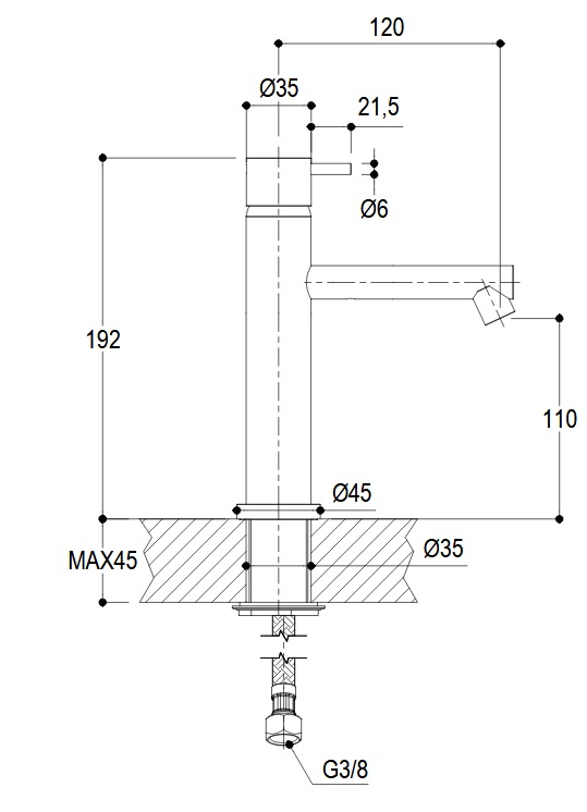 Ritmonio Diametro35 Bateria umywalkowa 1-otworowa stal nierdzewna E0BA0123DINOX