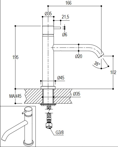 Ritmonio Diametro35 Bateria umywalkowa 1-otworowa stal nierdzewna E0BA0124CINOX