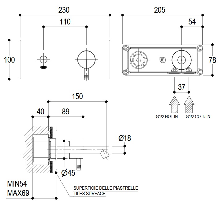 Ritmonio Diametro35 Bateria umywalkowa ścienna podtynkowa stal nierdzewna E0BA0116D