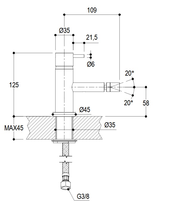 Ritmonio Diametro35 Bateria Bidetowa 1-otworowa stal nierdzewna E0BA0122DINOX