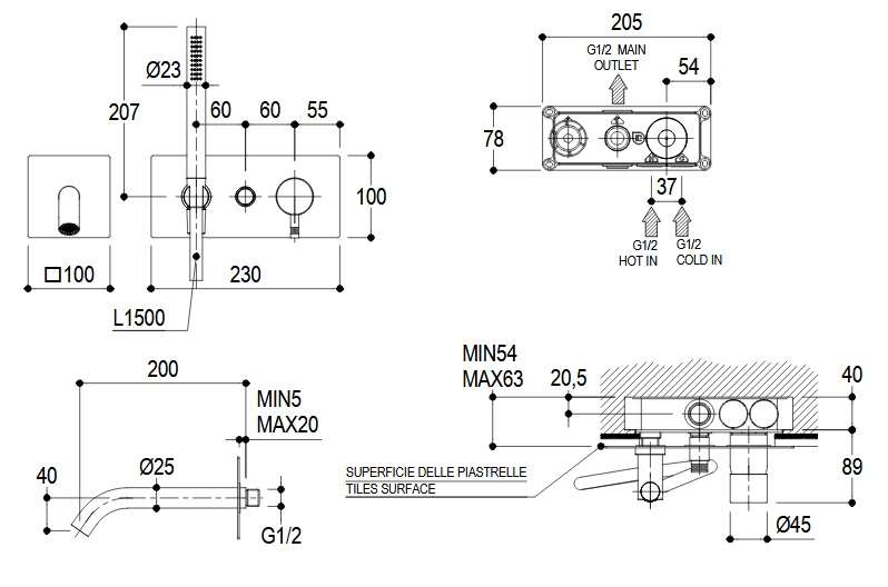 Ritmonio Diametro35 Bateria wannowo-prysznicowa podtynkowa z słuchawką stal nierdzewna E0BA0438CINOX