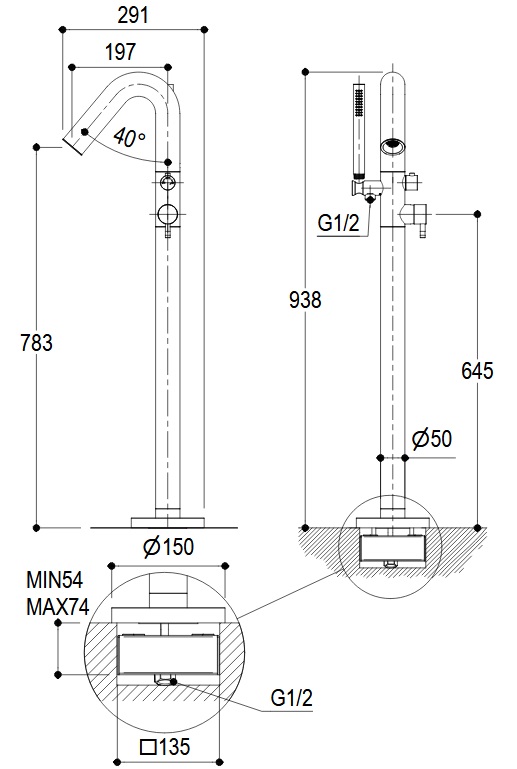 Ritmonio Diametro35 Bateria wannowa wolnostojąca stal nierdzewna E0BA0475FINOX