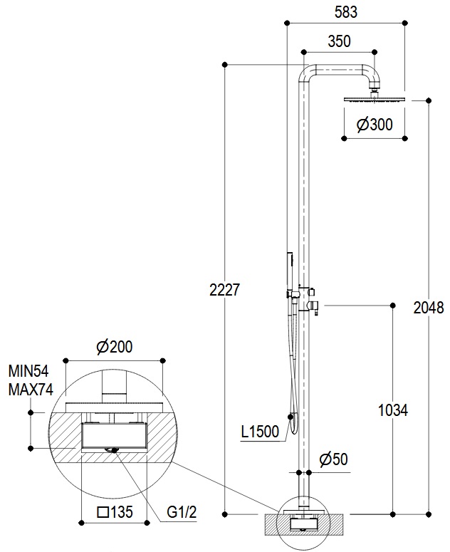 Wysokość wylewki: 2048 mm