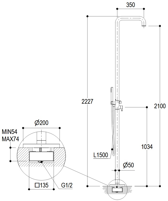 Ritmonio Zestaw prysznicowy wolnostojący stal nierdzewna E0BA0478EICM