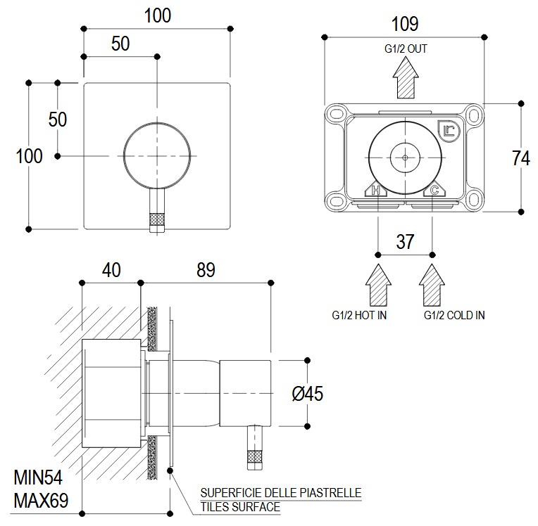 Ritmonio Diametro35 Bateria prysznicowa/umywalkowa podtynkowa stal nierdzewna E0BA0144