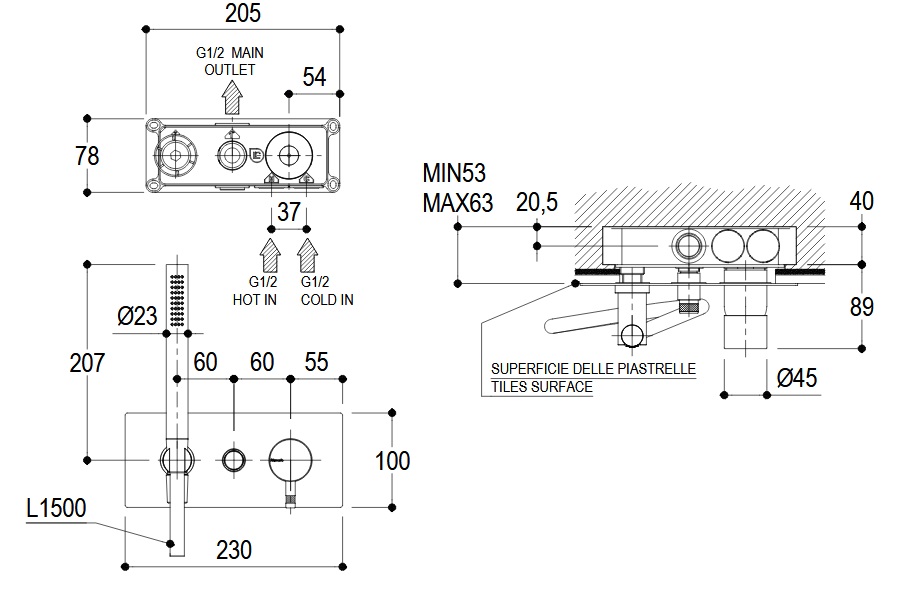 Ritmonio Diametro35 Bateria wannowo-prysznicowa podtynkowa z słuchawką stal nierdzewna E0BA0436INOX