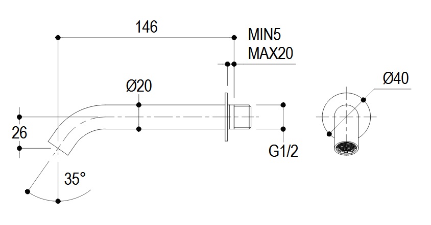Ritmonio Diametro35 Wylewka umywalkowa ścienna stal nierdzewna E0BA0157H1CINOX