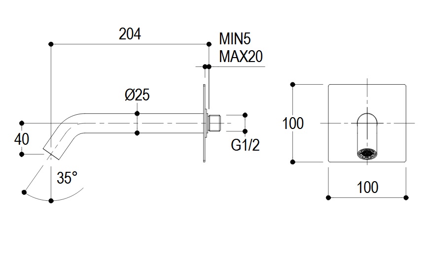 Ritmonio Wylewka wannowa ścienna stal nierdzewna E0BA0155H2CINOX