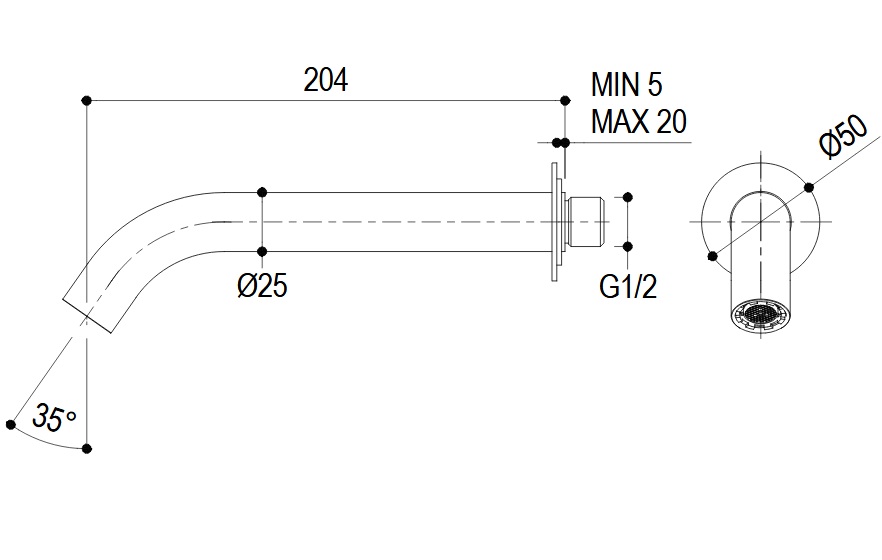 Ritmonio Wylewka wannowa ścienna stal nierdzewna E0BA0155H3CINOX