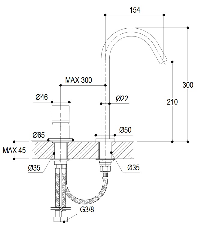 Ritmonio Diametro35 Concrete Bateria umywalkowa 2-otworowa stal nierdzewna E0BA0125H1INOX