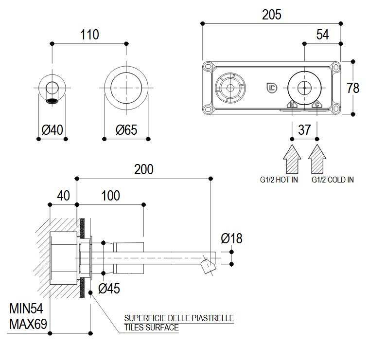 Ritmonio Diametro35 Concrete Bateria umywalkowa ścienna podtynkowa stal nierdzewna E0BA0117SPDINOX