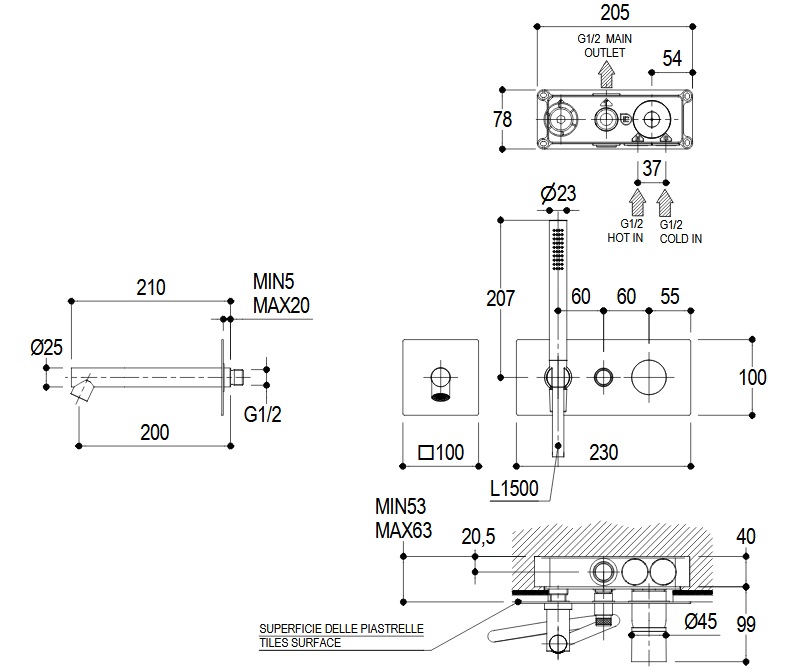 Ritmonio Diametro35 Concrete Bateria wannowo-prysznicowa podtynkowa z słuchawką stal nierdzewna E0BA0438DINOX