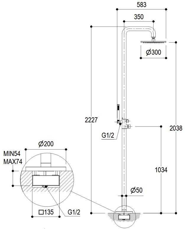 Ritmonio Concrete Zestaw prysznicowy wolnostojący stal nierdzewna E0BA0470FINOX