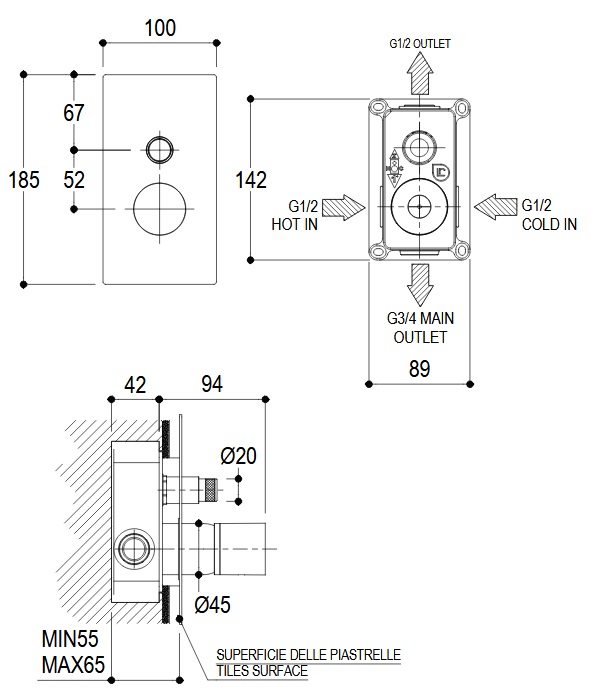 Ritmonio Diametro35 Concrete Bateria wannowo-prysznicowa podtynkowa stal nierdzewna E0BA0154INOX