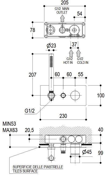 Ritmonio Diametro35 Concrete Bateria wannowo-prysznicowa z słuchawką podtynkowa stal nierdzewna E0BA0436FINOX