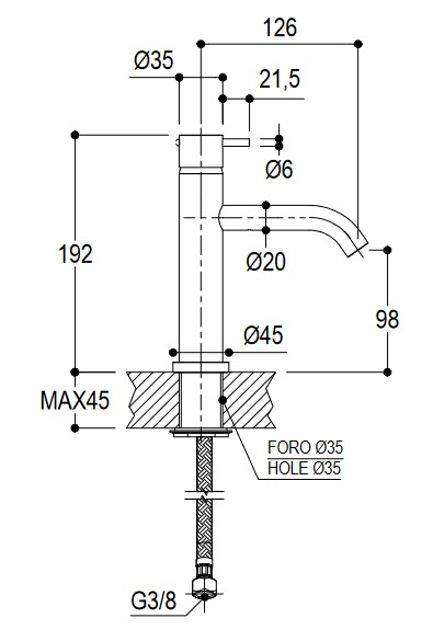Ritmonio Diametro35 Bateria umywalkowa 1-otworowa bez korka automatycznego chrom E0BA0123CLCRL
