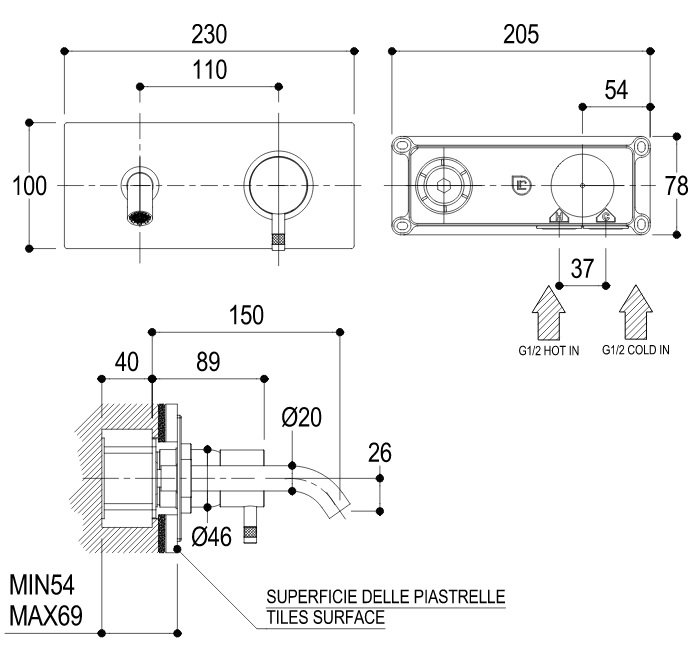 Ritmonio Diametro35 Bateria umywalkowa podtynkowa chrom E0BA0116CCRL