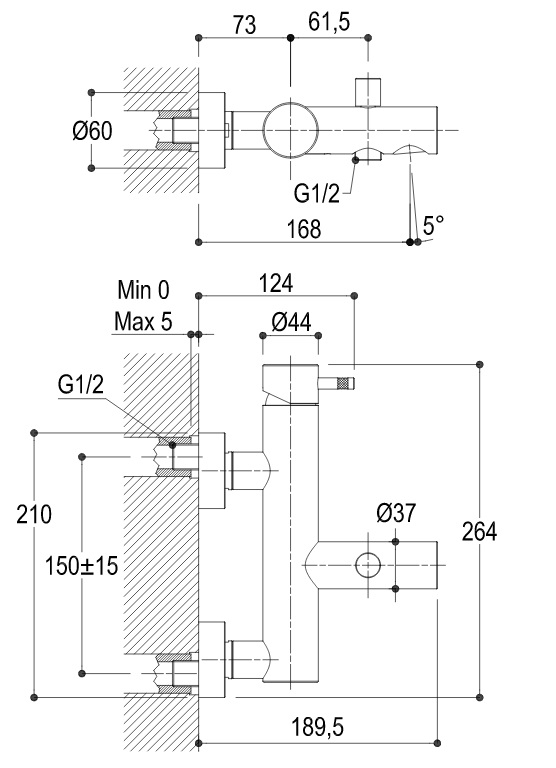 Ritmonio Diametro35 Bateria wannowo-natryskowa ścienna chrom E0BA0138CRL