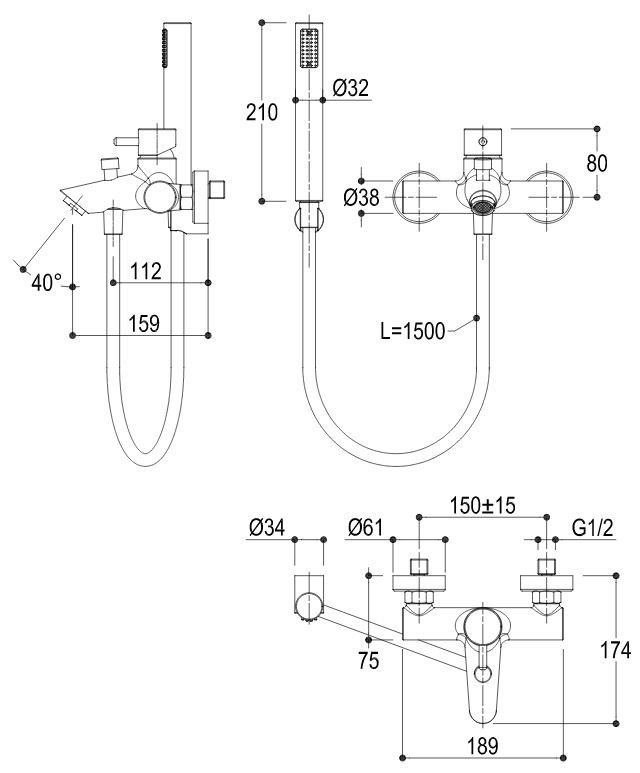 Ritmonio Bateria wannowo-natryskowa ścienna chrom Q0BA6032CRL