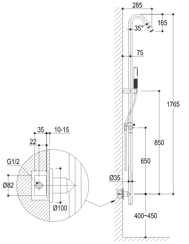 Ritmonio Zestaw natryskowy ścienny chrom E0BA0471ESTCRL