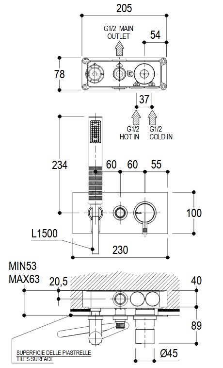 Ritmonio Diametro35 Bateria wannowo-natryskowa podtynkowa chrom E0BA0436CRL