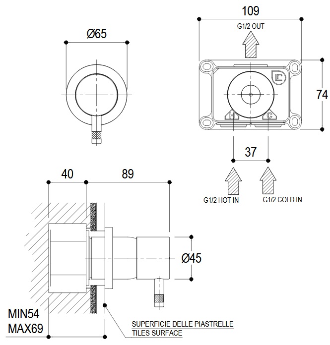 Ritmonio Diametro35 Mieszacz natryskowy/umywalkowy podtynkowy chrom E0BA0144S/PCRL